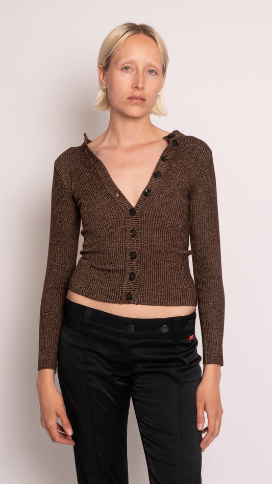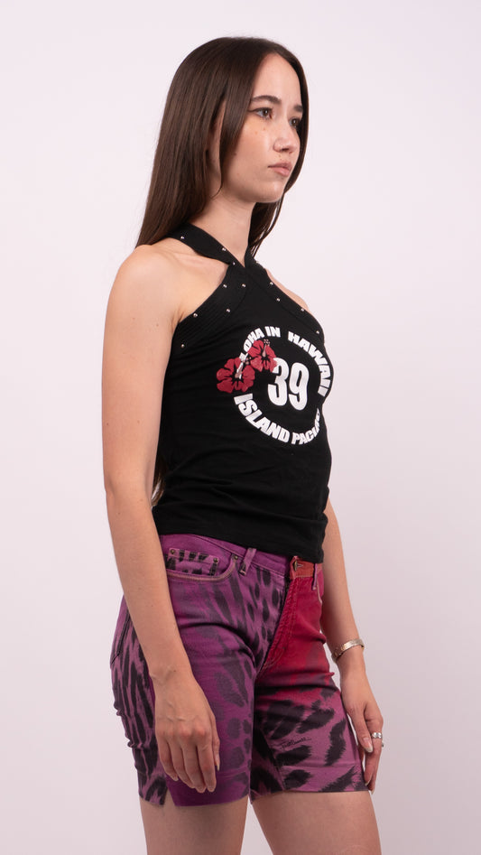Denny Rose Twisted Studded Halter Neck Graphic Top