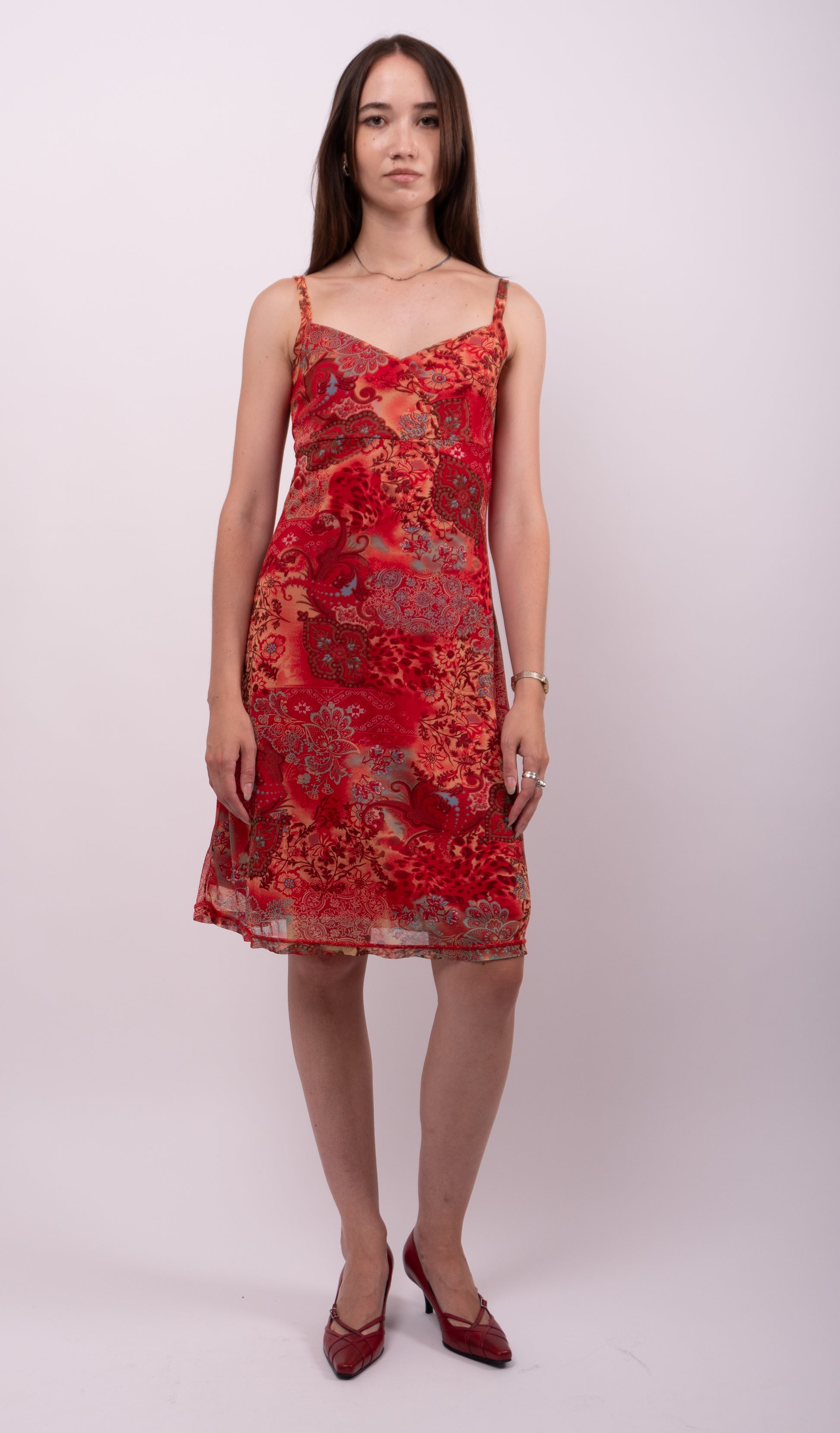 Casa Blanca Printed Mesh Slip Dress