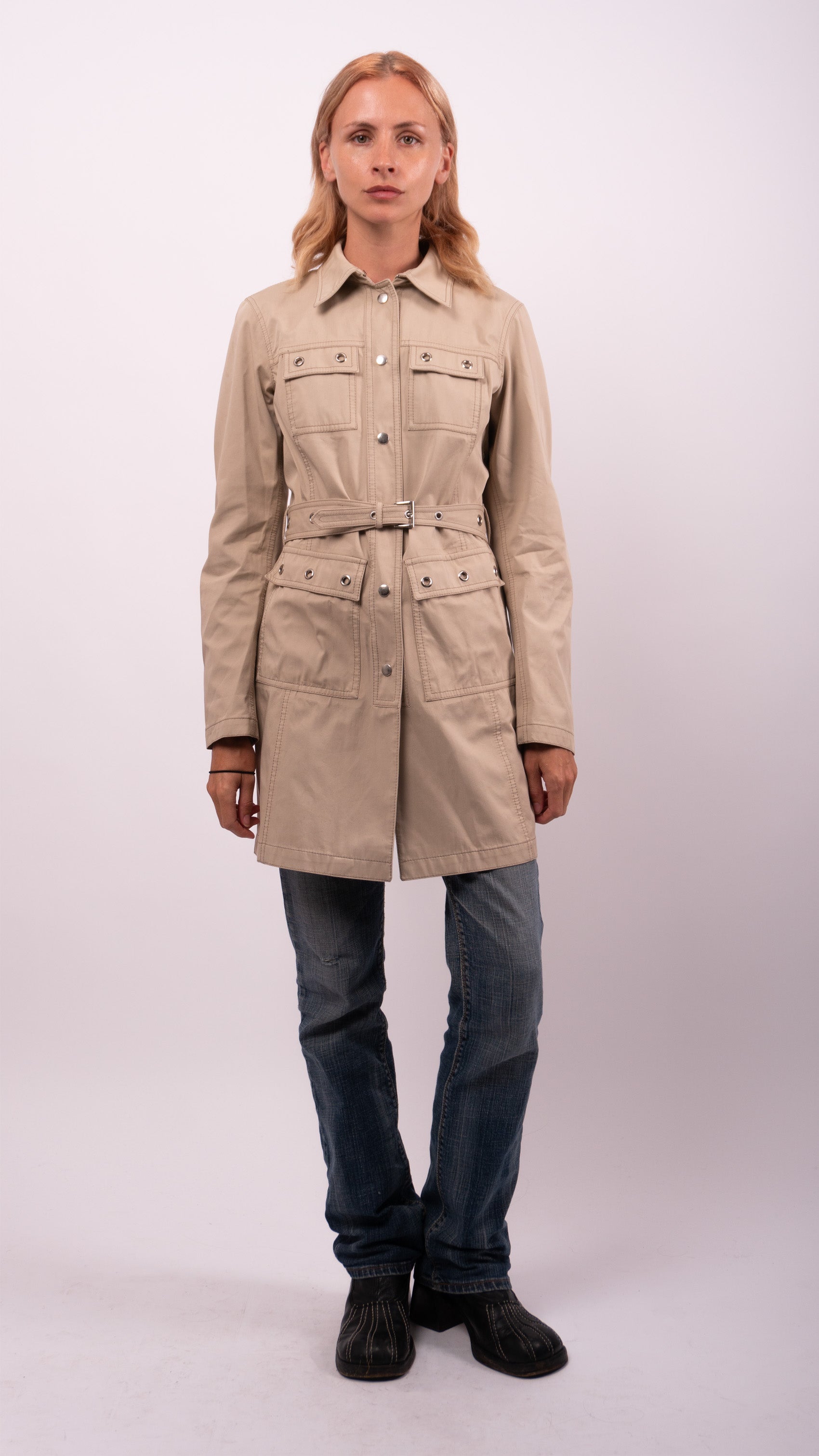 Prada Beige Button Up Trench Coat with Waist Belt and Four Front Pockets